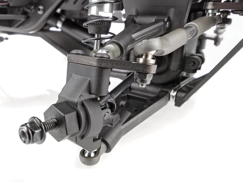 Suspension: Durable injection-molded upper and lower suspension arms with optimized ball cups provide maximum suspension articulation along with modern off-road vehicle suspension scale looks.